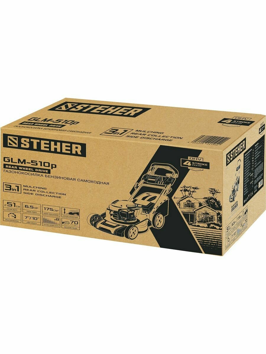 STEHER 510 мм 6.5 л.с самоходная газонокосилка бензиновая(GLM-510p)