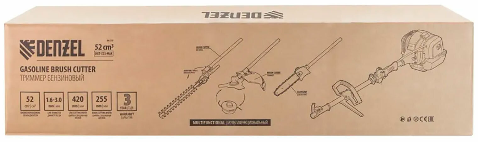 Мультифункциональный бензиновый триммер DENZEL DGT-52S-MAX 96279