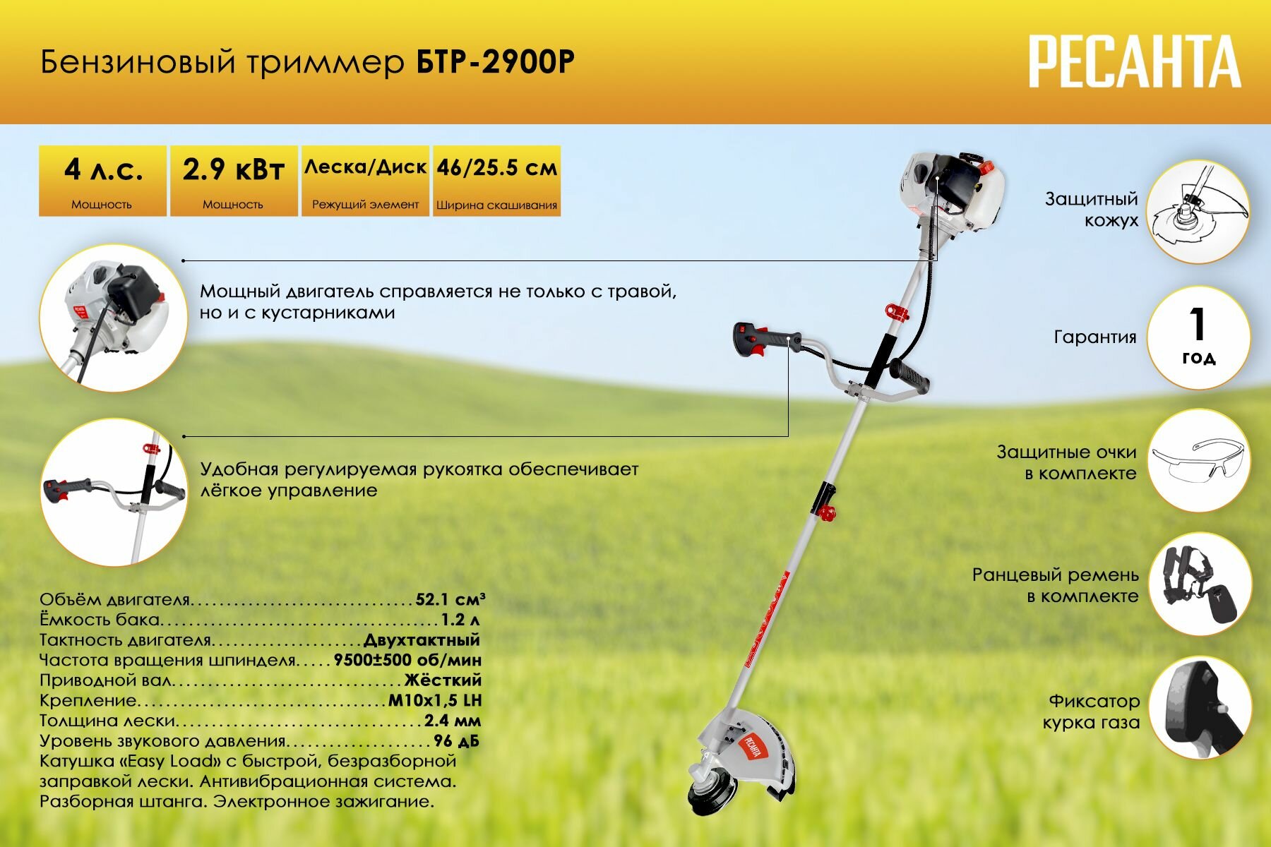 Бензиновый триммер БТР-2900Р Ресанта интересное: