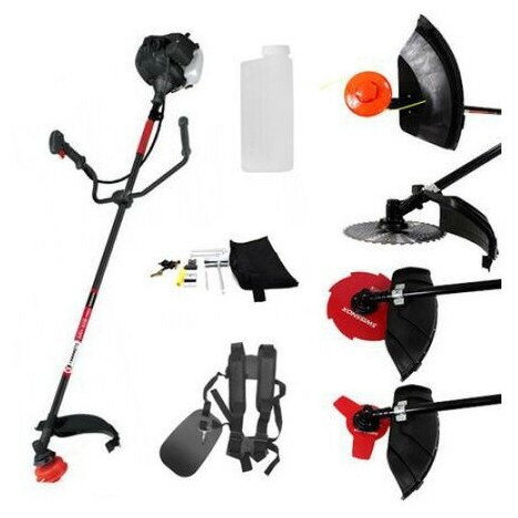 | Подробная комплектация | триммерная шпулька с леской - 1шт 3-х-лопастной нож SWISSNOX - 1 шт 8-ми-лопастной нож SWISSNOX - 1 шт диск 40Т(победитовые напайки) - 1 шт емкость с делениями для смешивания топлива широкий наплечный ремень. |