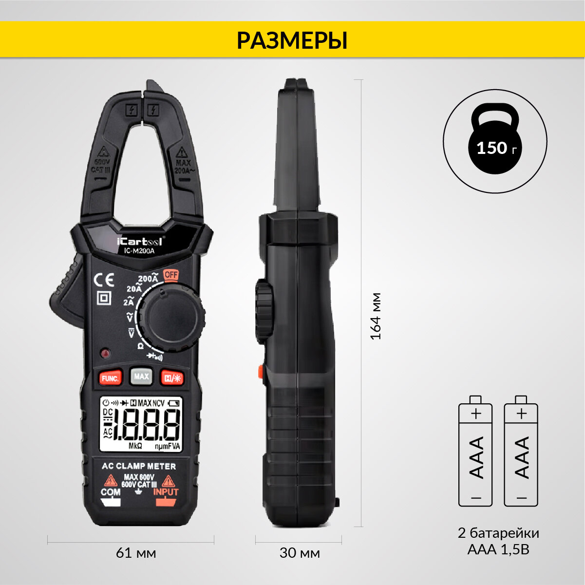 Токовые клещи переменного тока iCartool IC-M200A 200A