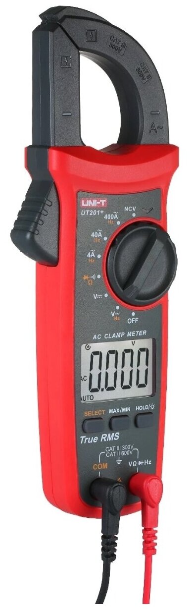 Клещи UNI-T UT201+, Цифровые токоизмерительные клещи AC, dпровода: 28мм, LCD (4000), 1шт