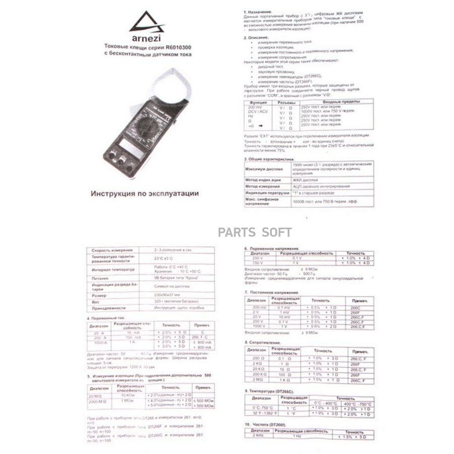 Токоизмерительные Клещи 266Cm Arnezi R6010300 ARNEZI арт. R6010300 интересное: