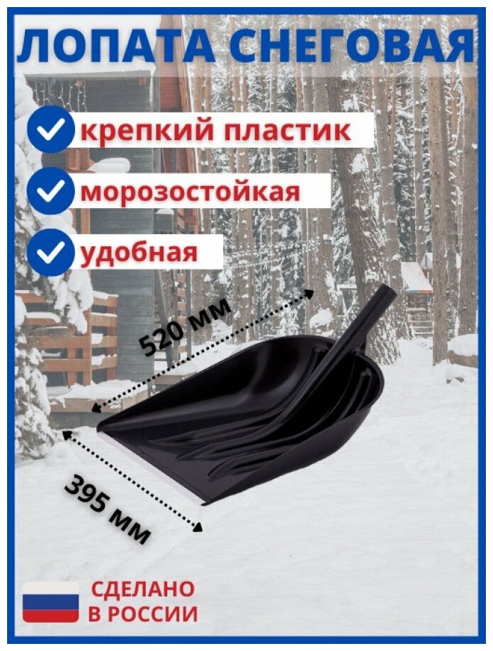 Лопата для уборки снега, снегоуборочная, снеговая 520х395 мм пластиковая пластмассовая с алюминиевой планкой с черенком интересное: