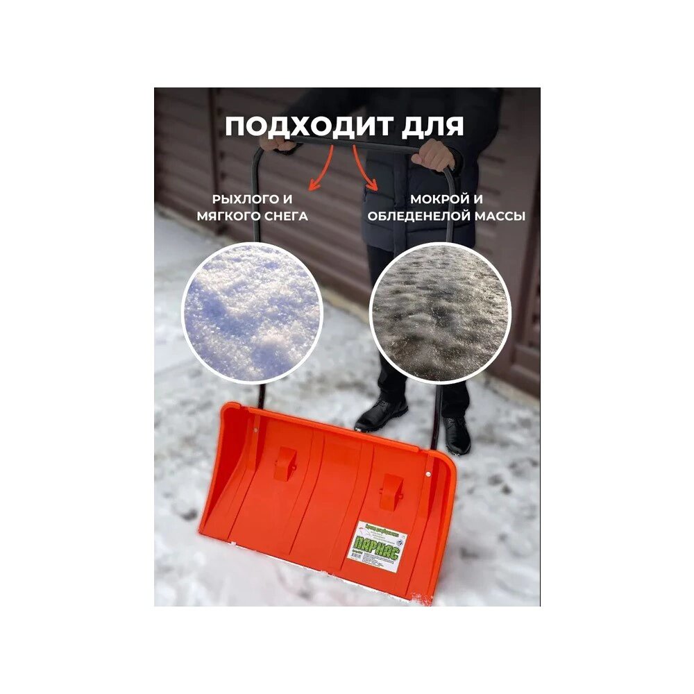 Скрепер для уборки снега на колёсиках 1380х860мм Парнас Инструм-Агро оранжевый