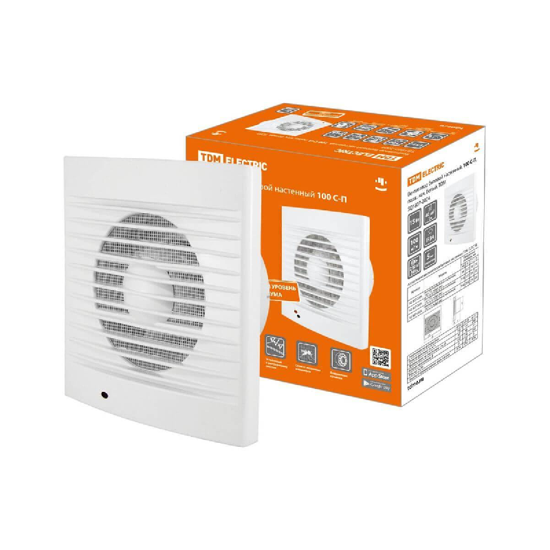 Купить TDM вентилятор вытяжной С-П d=100мм 15Вт подшип. кач.,сетка,бесшумн. 40дБ,100м3/ч,бел SQ1807-2004