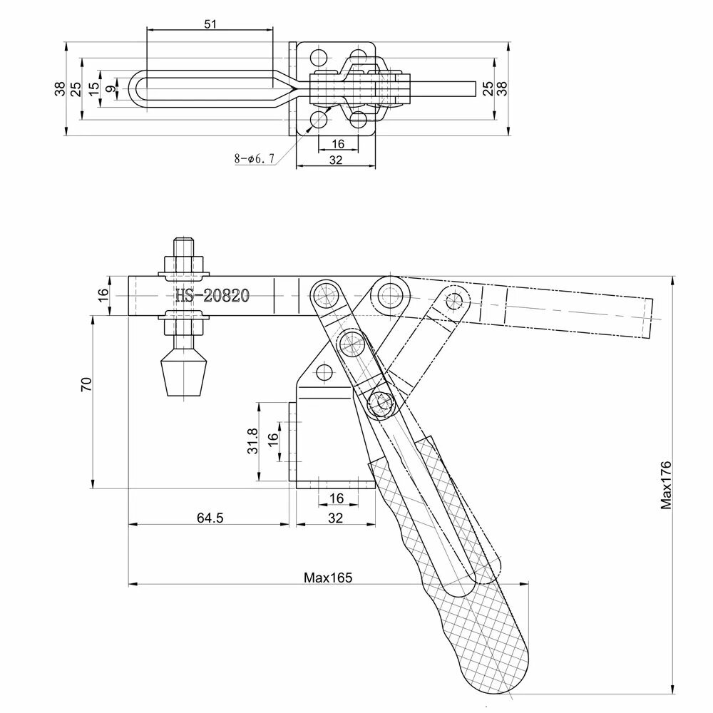 Зажим с горизонтальной рукоятью HS CLAMP HS-20820 интересное: