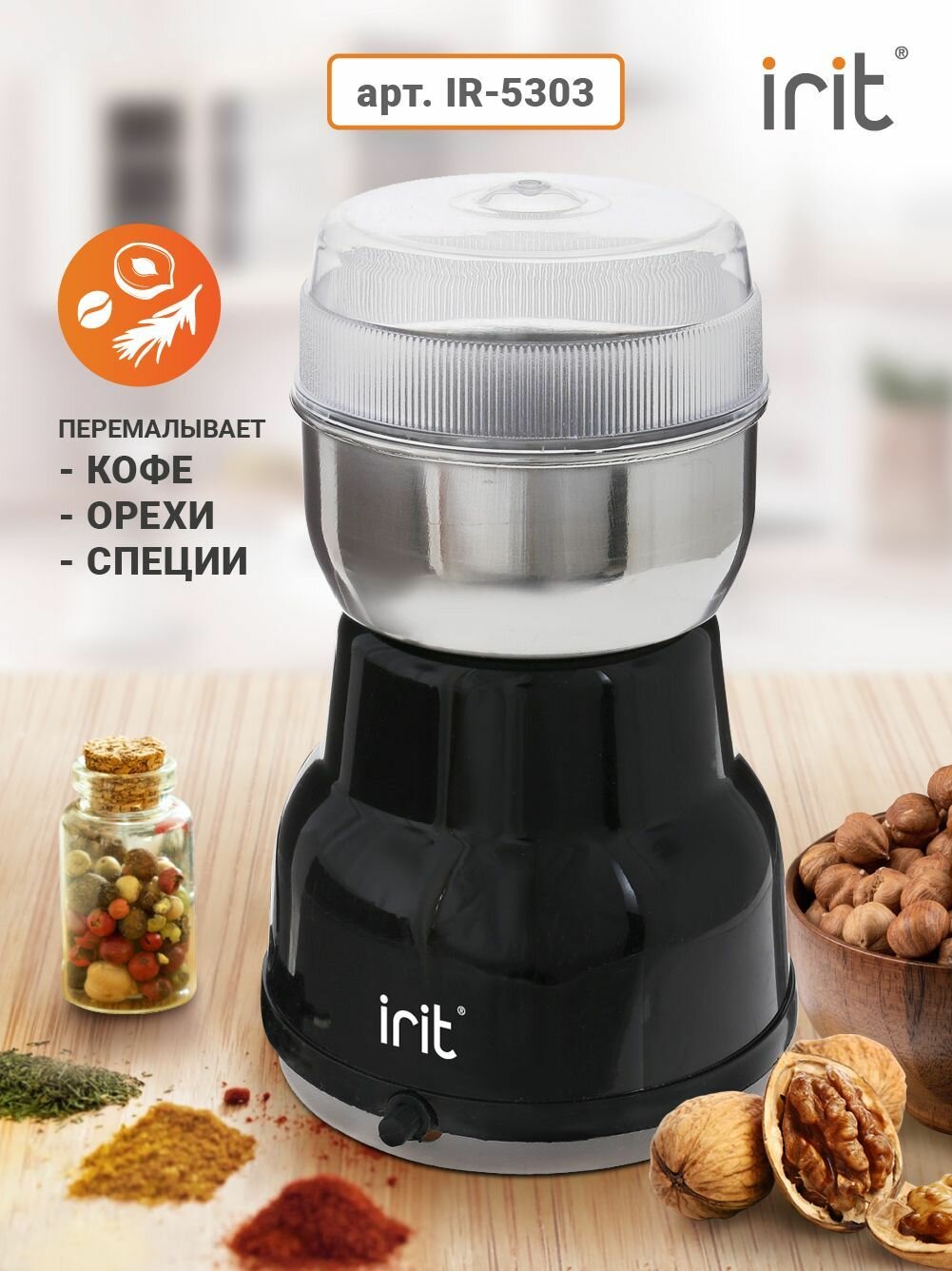 Кофемолка Irit IR-5303 100Вт, цвет-черный