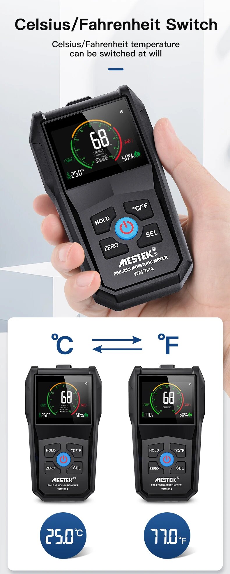 Купить Бесконтактный измеритель влажности древесины MESTEK WM700A. Индуктивный влагомер древесины.