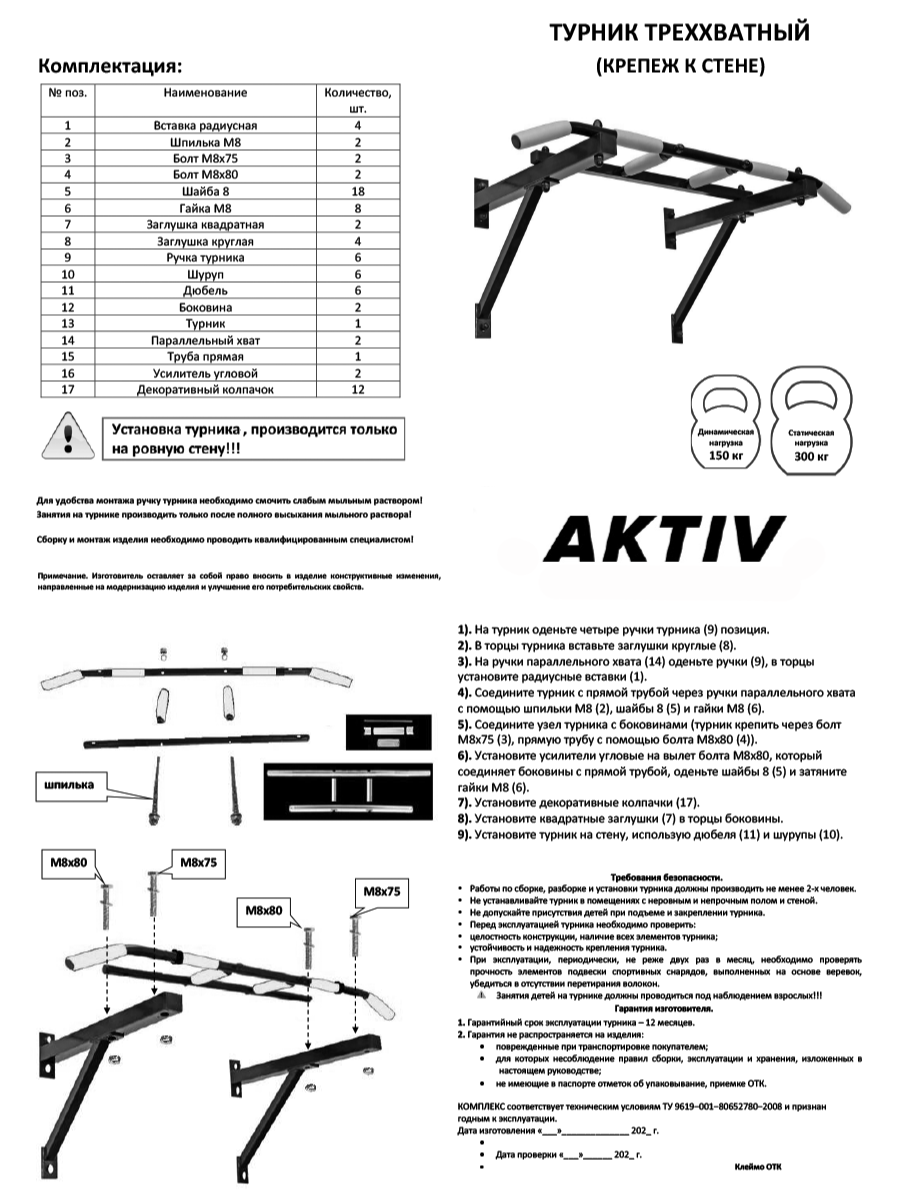| Плюсы: | Качественный турник, хорошее крепление. В комплекте крепежный набор и комплект заглушек. |