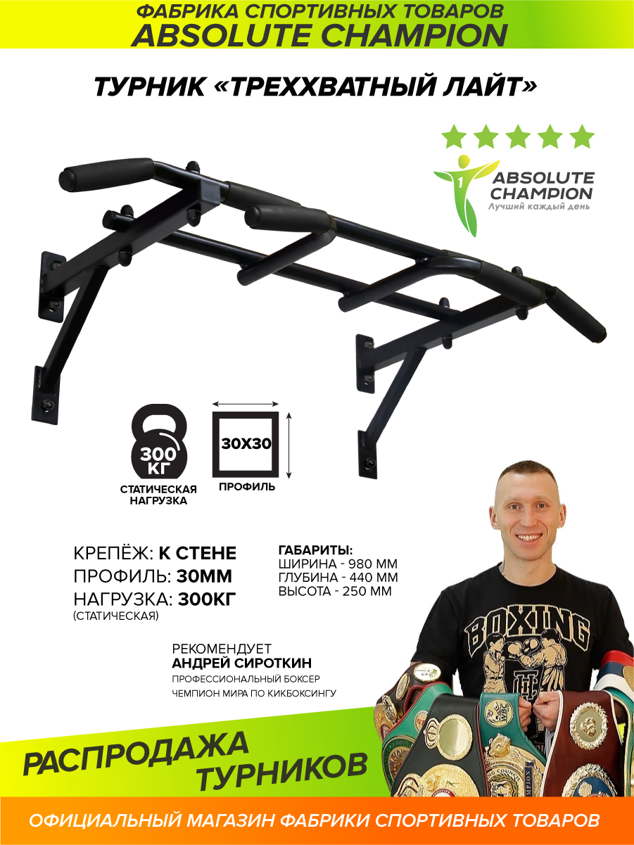 Купить Турник настенный Треххватный лайт. 3 хвата для подтягивания Absolute Champion. Турник на стену треххватный. Турник для дома усиленный. Мультихват