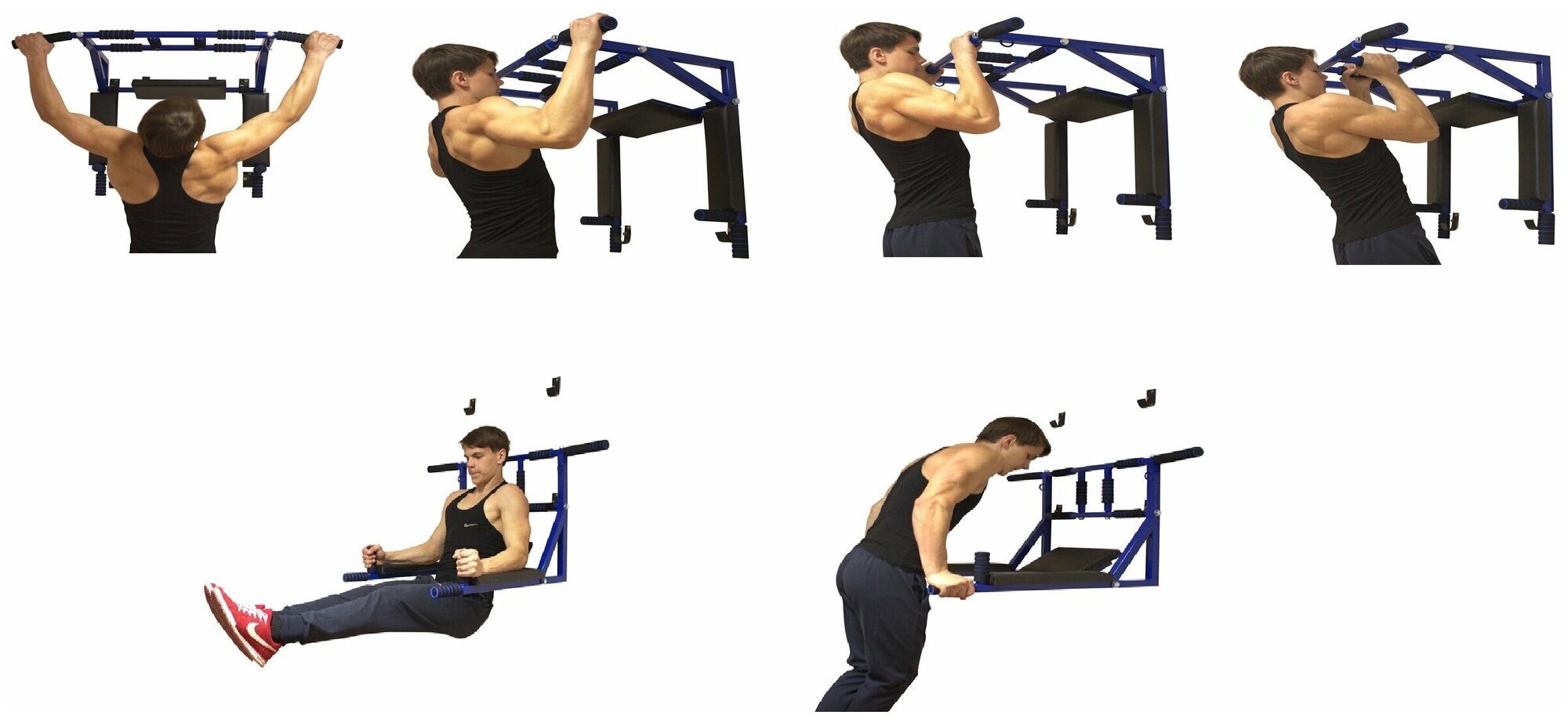 Турник 3в1 Мультихват настенный разборный (цвет: черно-синий)