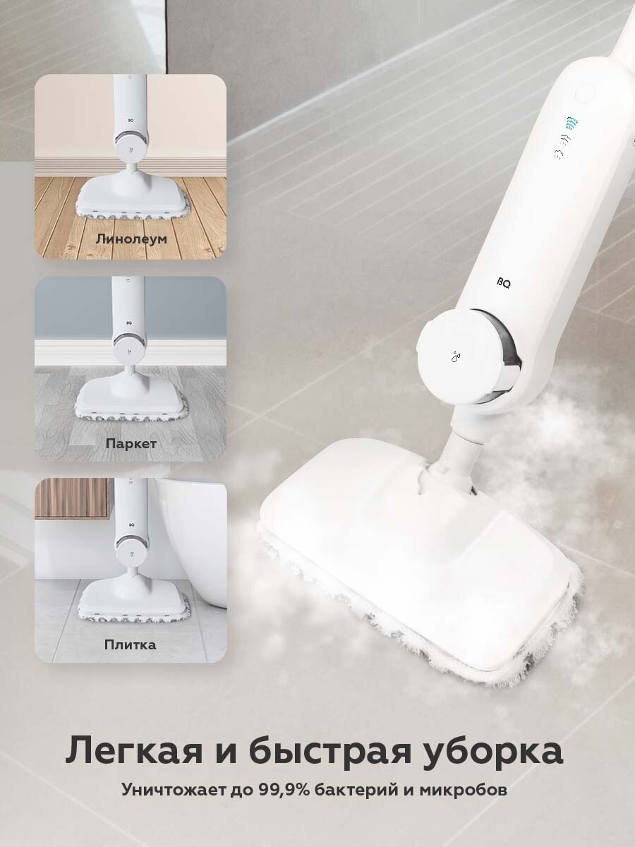 Паровая швабра BQ Sm1000, 1400 Вт, 280 мл, шнур 5 м, бело-чёрная BQ 10251129 .