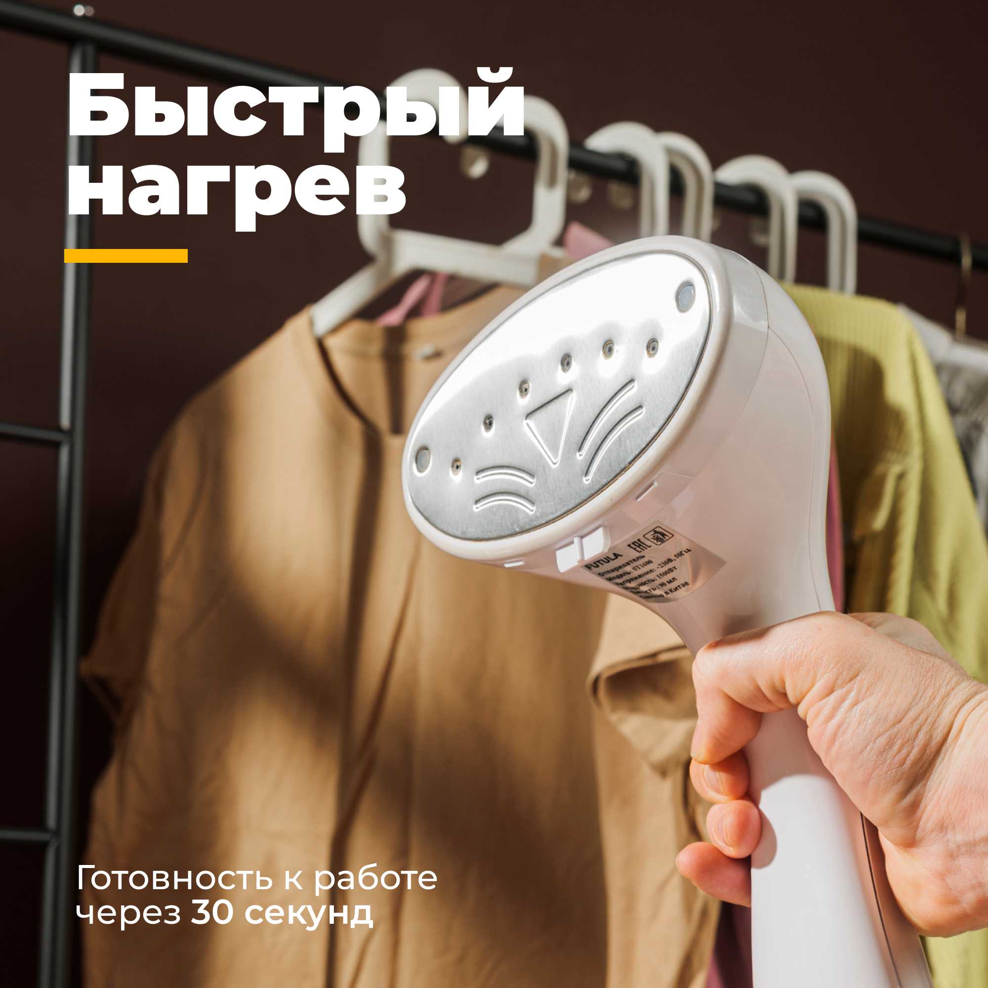 Ручной отпариватель для одежды Futula ST1600 черный, мощность 1500 ВТ