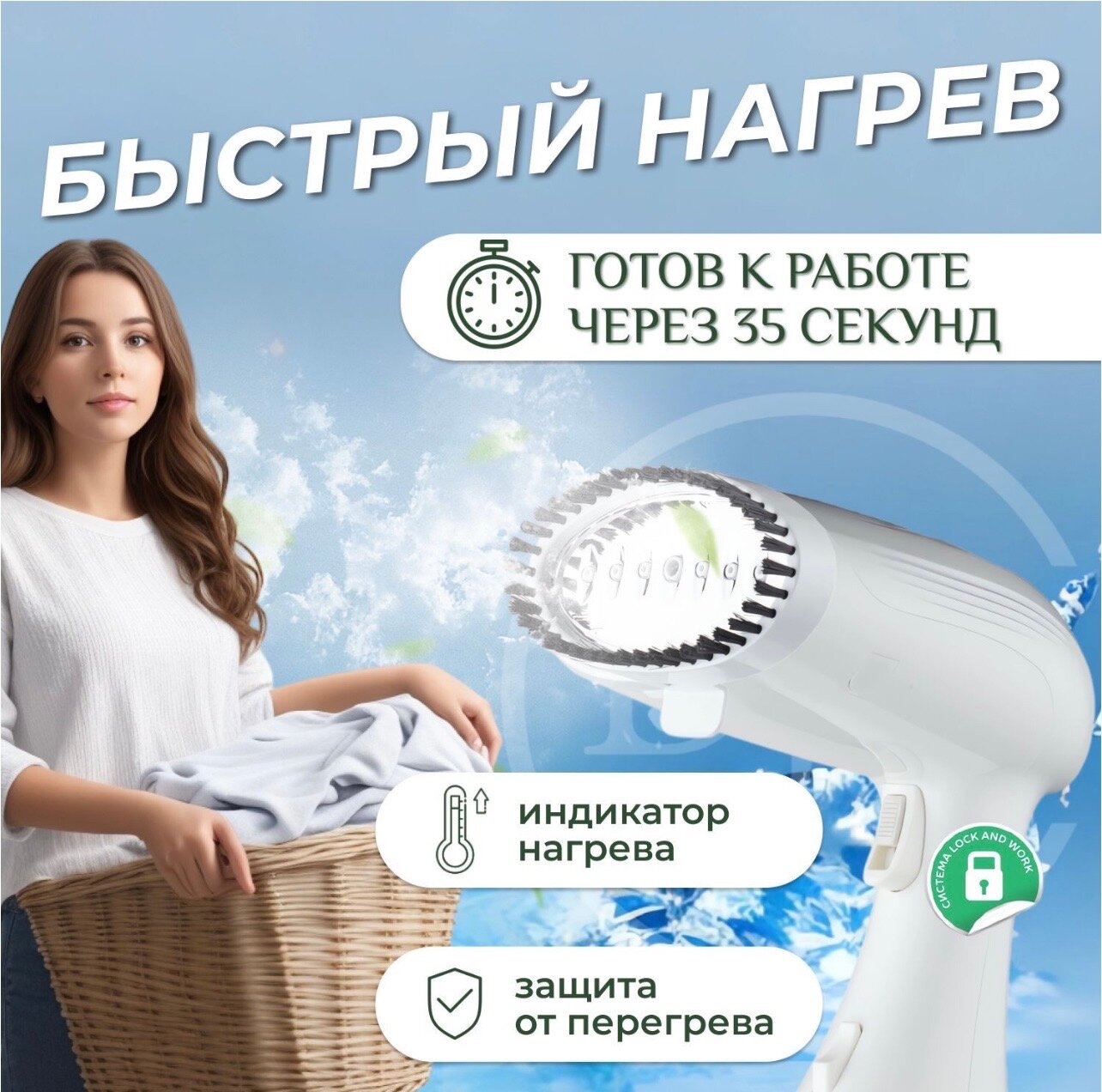 Ручной отпариватель для одежды, дорожный, с насадкой щетка, щеткой белый, парогенератор для вещей, паровой, электрический, для дома