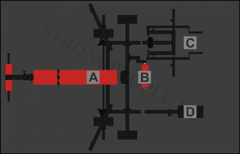| Вид тренажера | силовая рама / турник / гиперэкстензия / машина Смита / брусья / скамья / кроссовер / стойка / тренажер со свободным весом |