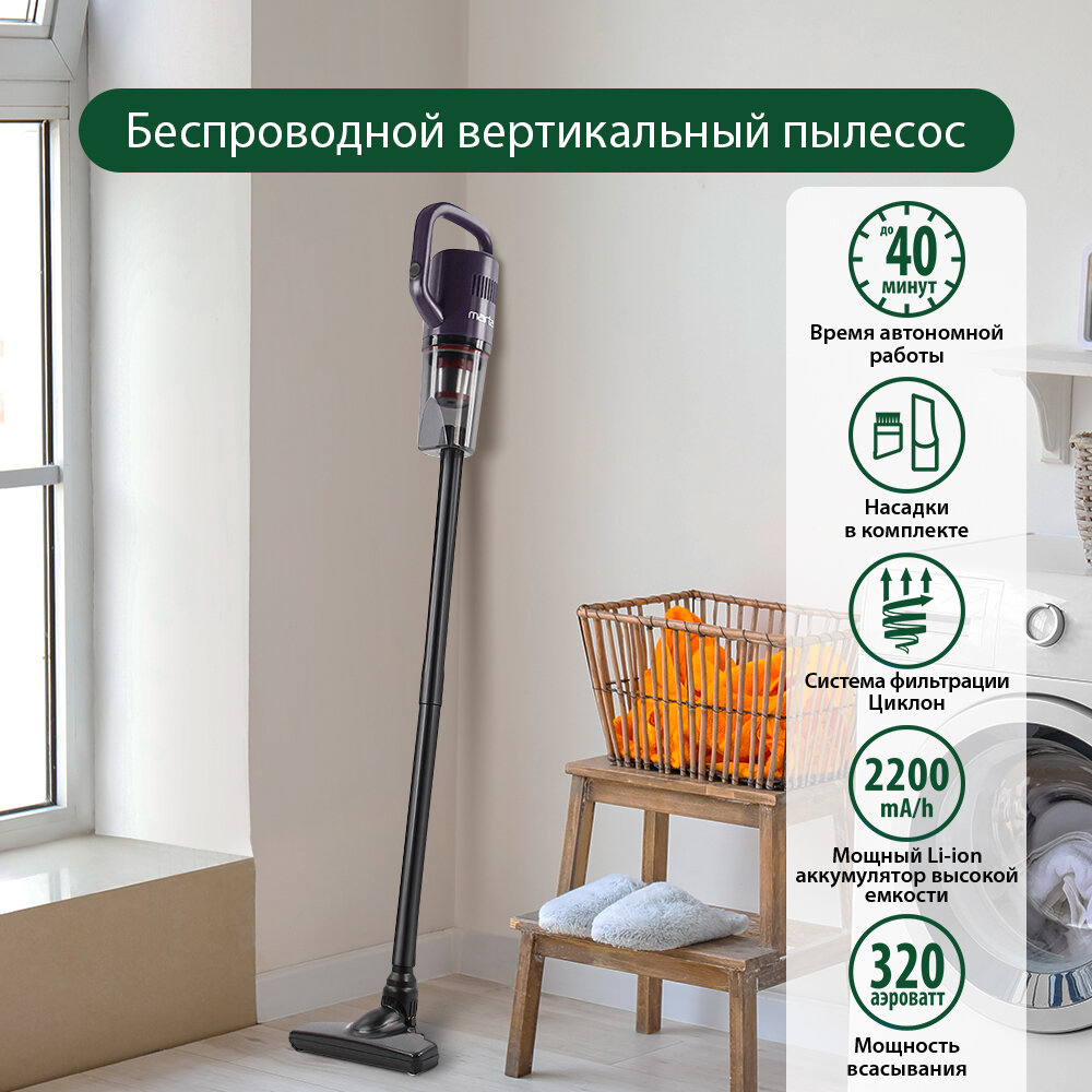 | Плюсы: | Лёгкий, удобный, не ограничен проводом. Со сбором мелкого мусора и пыли с твёрдого пола справляется. |