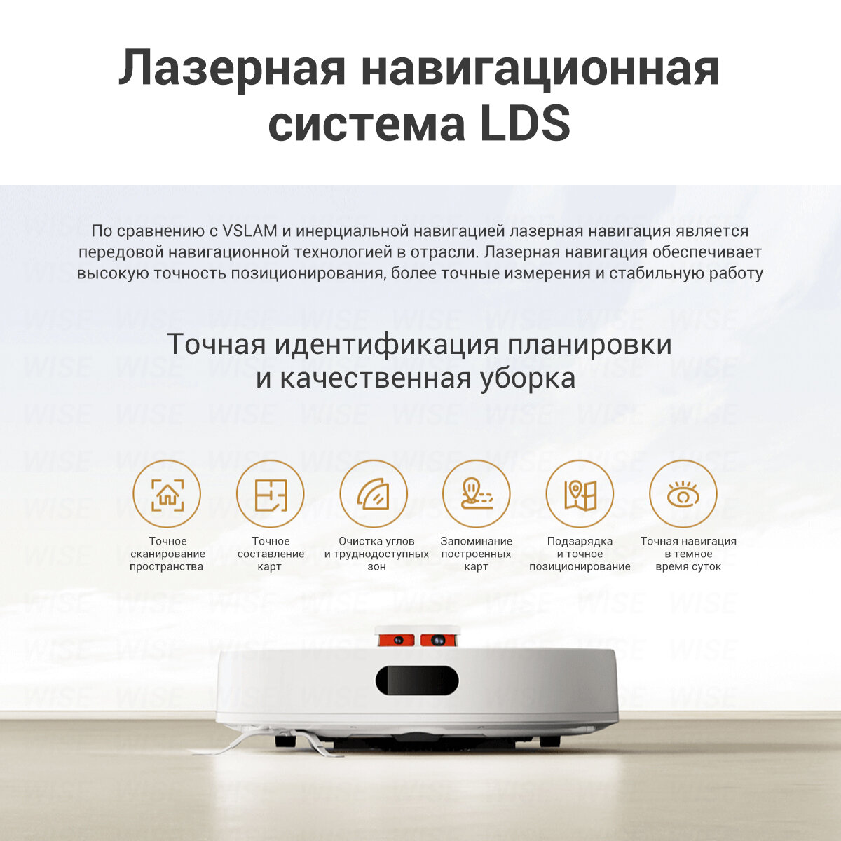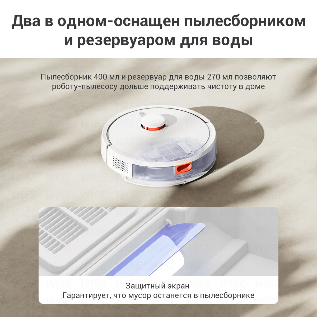 | Дополнительная информация | 3 уровня влажной уборки; отключение при перегреве; материал корпуса: пластик; мощность всасывания: 4000 Па; сканирование 360° на дистанции до 8 м |