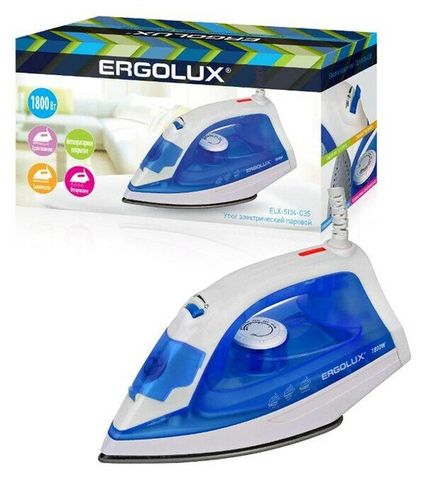 Утюг ERGOLUX ELX-SI04-C35, 1800 Вт, подача пара, самоочистка от накипи, синий интересное: