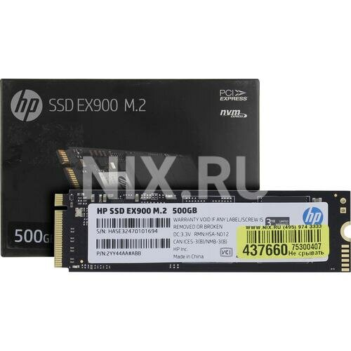 SSD диск HP M.2 EX900 500 Гб PCIe Gen3x4, NVMe1.3 3D TLC (2YY44AA)