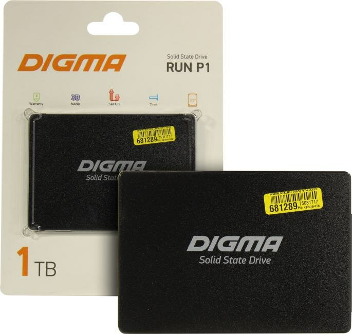 Твердотельный накопитель SSD 2.5 1 Tb Digma Run P1 Read 500Mb/s Write 400Mb/s 3D NAND TLC