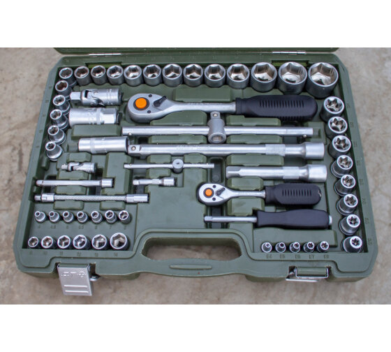 | Головки торцевые подробно | 1/4": 4, 4.5, 5, 5.5, 6, 7, 8, 9, 10, 11, 12, 13, 14 мм; длинные 1/4": 6, 7, 8, 9, 10, 11, 12, 13 мм; Torx 1/4": E4, E5, E6, E7,… E8; с битами 1/4": SL4, SL5.5, SL6, PH1, PH2, PZ1, PZ2, H3, H4, H5, H6, T8, T10, T15, T20, T25, T27, T30; вороток т-образный 1/4": 115 мм; трещетка 1/4": 45 зубов; удлинитель 1/4": 50, 100 мм; карданный шарнир 1/4"; 1/2": 10, 11, 12, 13, 14, 15, 16, 17, 18, 19, 20, 21, 22, 24, 27, 30, 32 мм; длинные 1/2": 14, 15, 17, 19, 22 мм; Torx 3/8": E10, E11, E12, E14, E16, E18, E20, E24; свечные 1/2": 16, 21 мм; трещетка 1/2": 45 зубов; удлинитель 1/2": 125, 250 мм; карданный шарнир 1/2"; ещёскрыть |