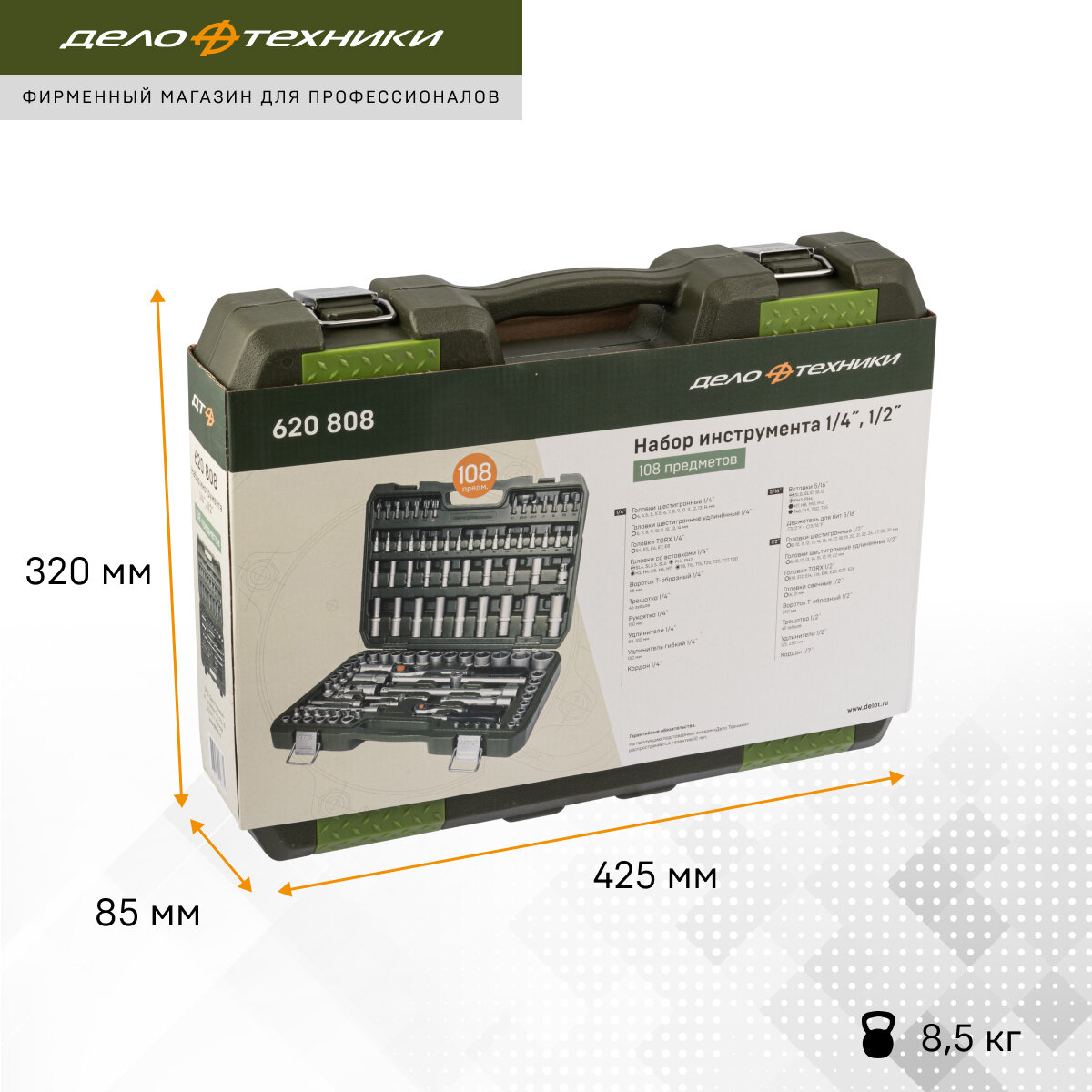 Набор инструментов Дело техники, 1/4", 1/2", 108 предметов, 620808