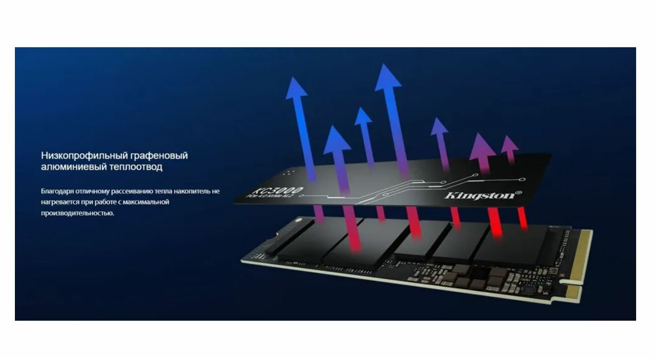 SSD диск Kingston M.2 2280 KC3000 1.0 Тб PCI-E 4.0 x4 NVMe 3D TLC графеновый радиатор (SKC3000S/1024G)