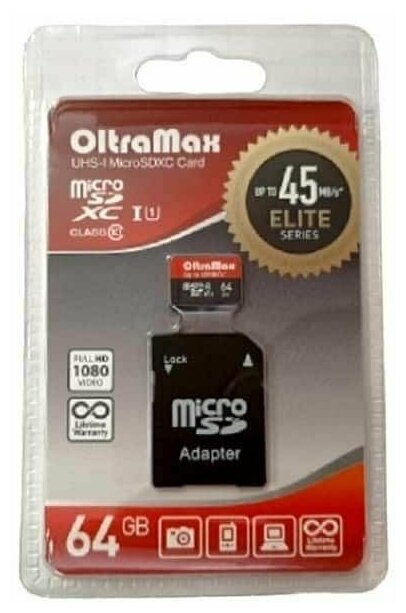 Купить Карта памяти OltraMax MicroSDXC 64GB Class 10 UHS-1 Elite + адаптер SD 45 MB/s