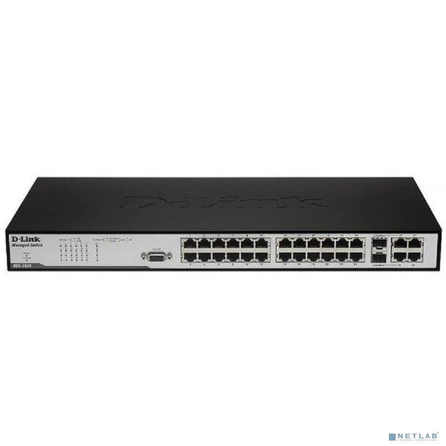 Коммутатор D-link DES-3028_RFB/A1 24x10/100Base-TX, 2x1000BASE-T, 2xCombo 1000BASE-T/SFP, L2, восстановленный в производственных условиях
