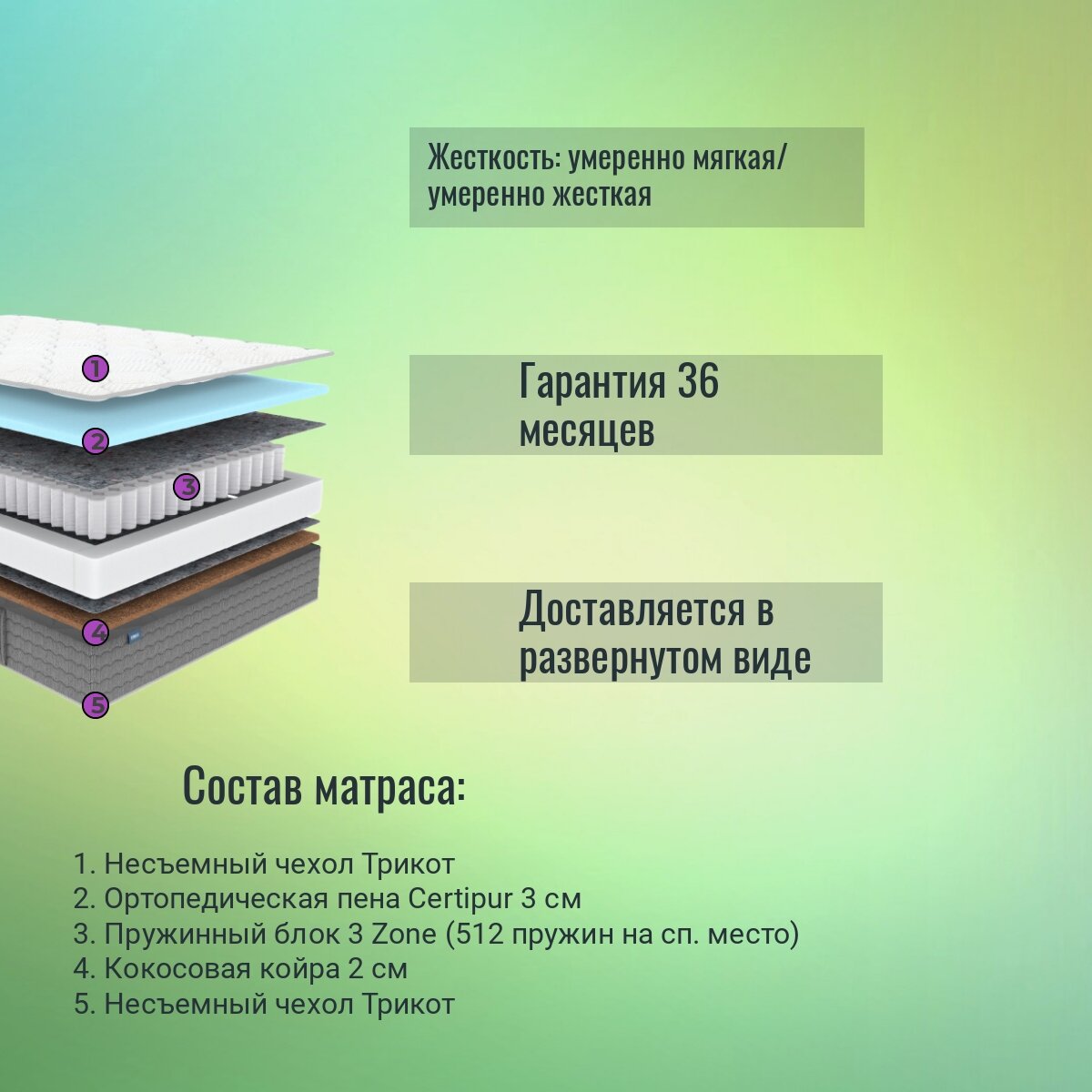 | Наполнитель | комбинированный (пенополиуретан + кокосовая койра) |