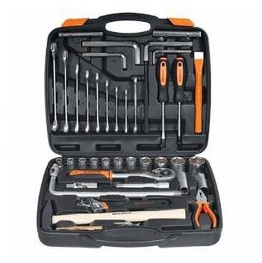 | Инструменты в комплекте | молоток / отвёртки / вороток для головок / трещотка / пассатижи / ключи гаечные / ключ трубный рычажный / ключ разводной / ключи имбусовые (шестигранные) |