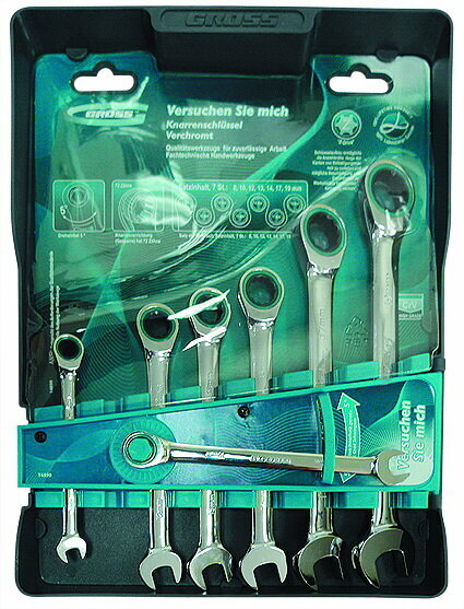 Ключи комбинированные Gross, с трещоткой, реверсивные, 8 - 19 мм, набор 7 шт