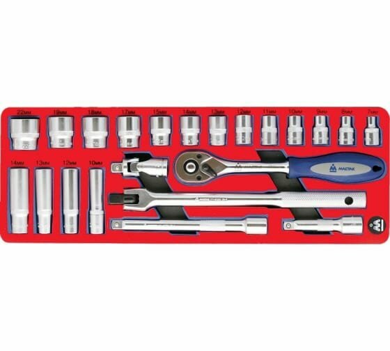 Мастак 5-003222 Набор торцевых головок 3/8” с принадлежностями, ложемент, 22 предмета