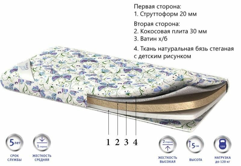 | Наполнитель | комбинированный (струттоформ + ватин + кокосовая койра) |