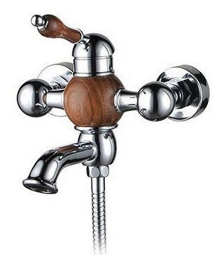Смеситель для ванны и душа Kaiser (Кайзер) Wood 61022 однорычажный с лейкой и шлангом, хром с деревянными вставками