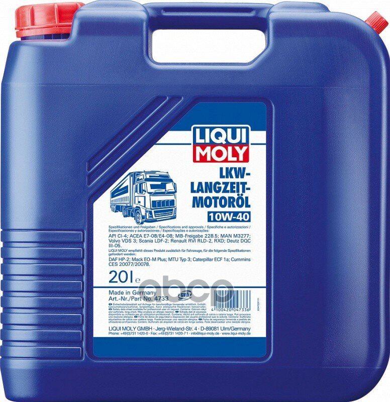 LIQUI MOLY 4733 LiquiMoly 10W40 LKW-Langzeit-Motoroil Basic (20L)_(синт)масло мотор. !\ MB 228.5, MAN 3277