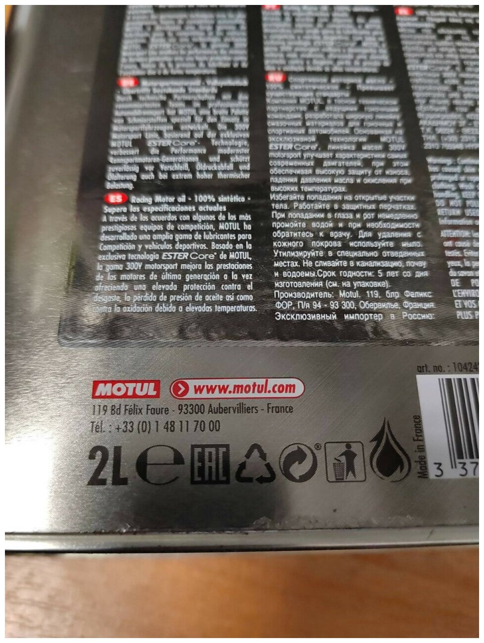 Синтетическое моторное масло Motul 300V Power 5W40, 2 л интересное:
