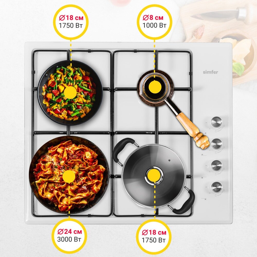 Газовая варочная панель Simfer H60Q40W401 серия Comfort, с автоподжигом, белая интересное: