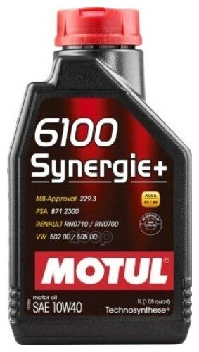 MOTUL Масло Моторное Motul 6100 Synergie+ A3/B4 10w-40 Синтетическое 1 Л 108646