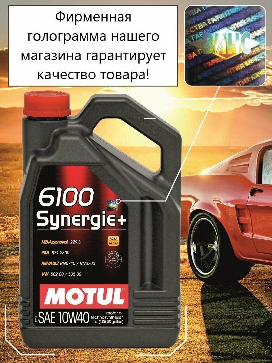 Масло моторное MOTUL Synergie+ 6100 10W40, Technosynthese 4 литра Масл MOTUL 10W40 61 101491/109463