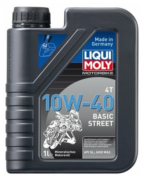 Моторное масло Liqui Moly Motorbike Basic Street 4T 10W-40, для мотоциклов, минеральное, 1л, (3044) .