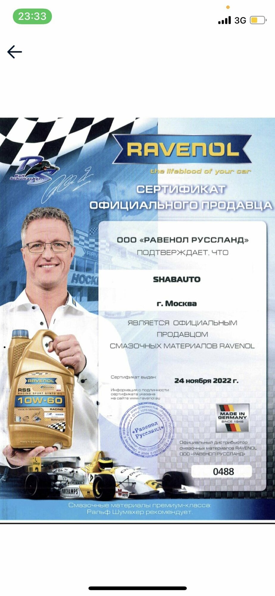 | Плюсы: | Товар пришёл упакованный в коробку. Проверил на оригинальность на сайте Ravenol, масло оригинальное. |