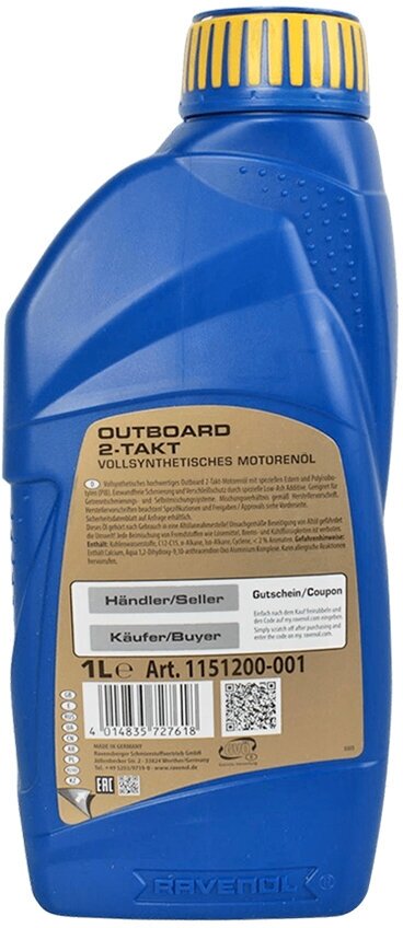 RAVENOL 4014835727618 1L 2 OUTBOARDOEL 2T FULLSYNTH. NEW моторное масло для Т ЛОД.мооров