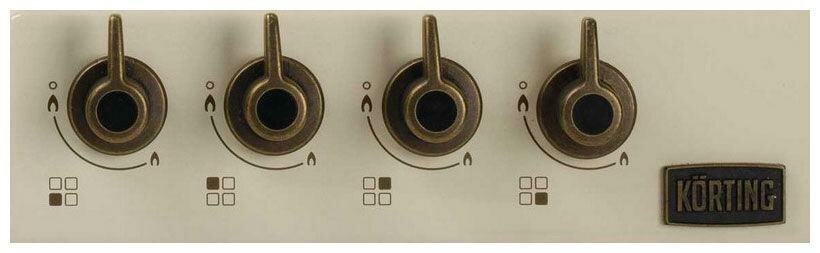 ресный дизайн. Газовая панель Korting HG 665 имеет 4 конфорки, а металлические стильные переключатели регулируются легко и плавно.Чугунные решетки устойчивые и надежные. А функции газ - контроль и электроподжиг создают удобство и безопасность. |
