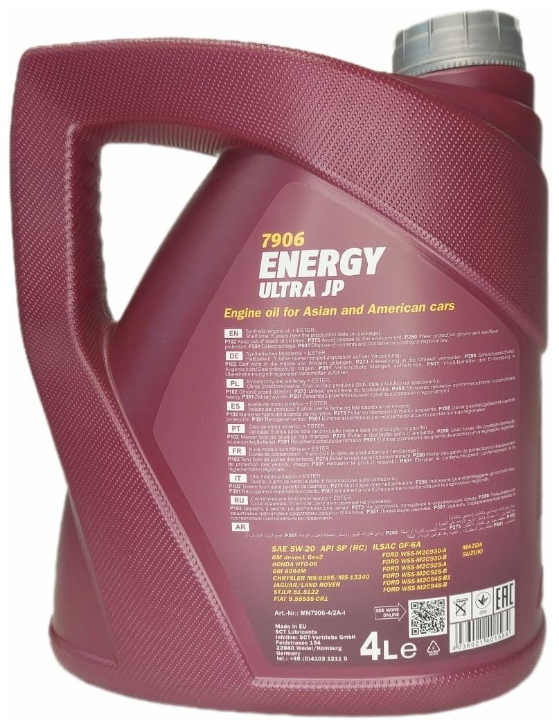 Купить 7906-4 Mannol Energy Ultra Jp 5W20 4Л. Синтетическое Мотороное Масло 5W20 Api Sn 4Л. MANNOL арт. MN7906-4