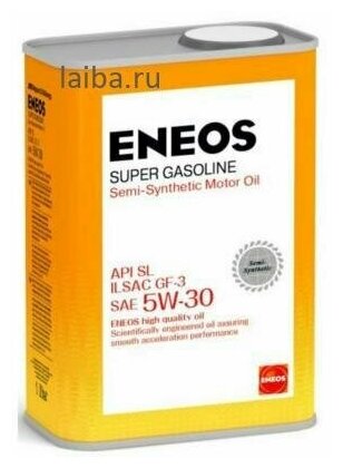 Масло моторное Eneos Super Gasoline 5w30 полусинтетическое, SL/GF-3, для бензинового двигателя, 1л, арт. 1358