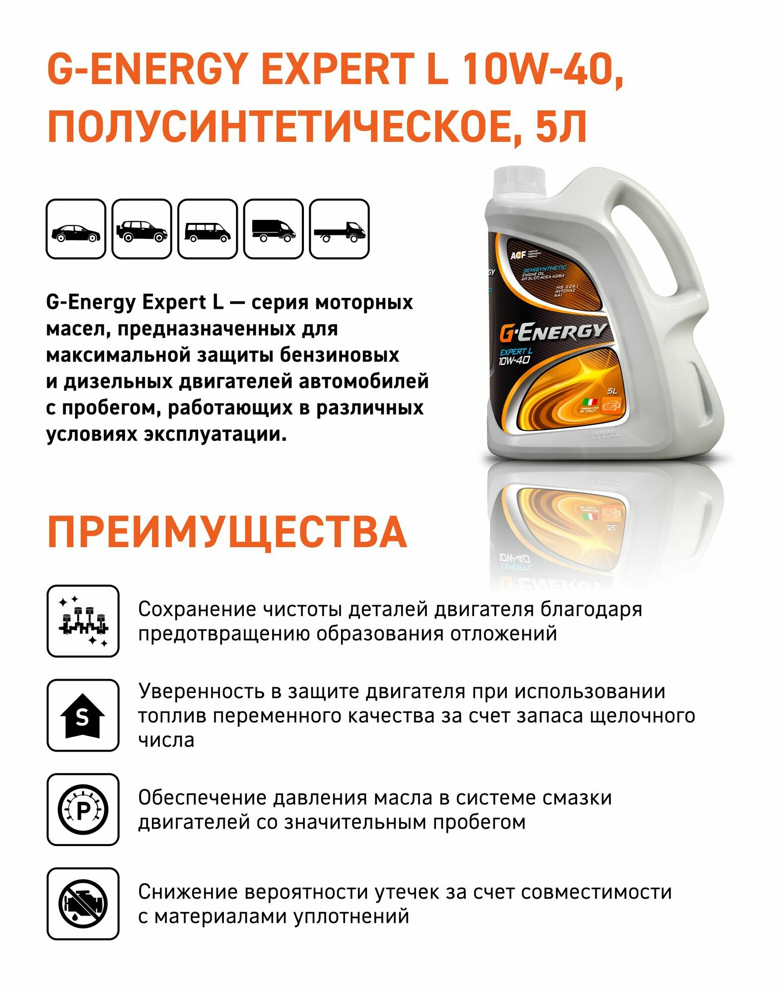 G-ENERGY 253140682 G-Energy Expert L 10W-40 API SL/CF 5 л Масло мотор