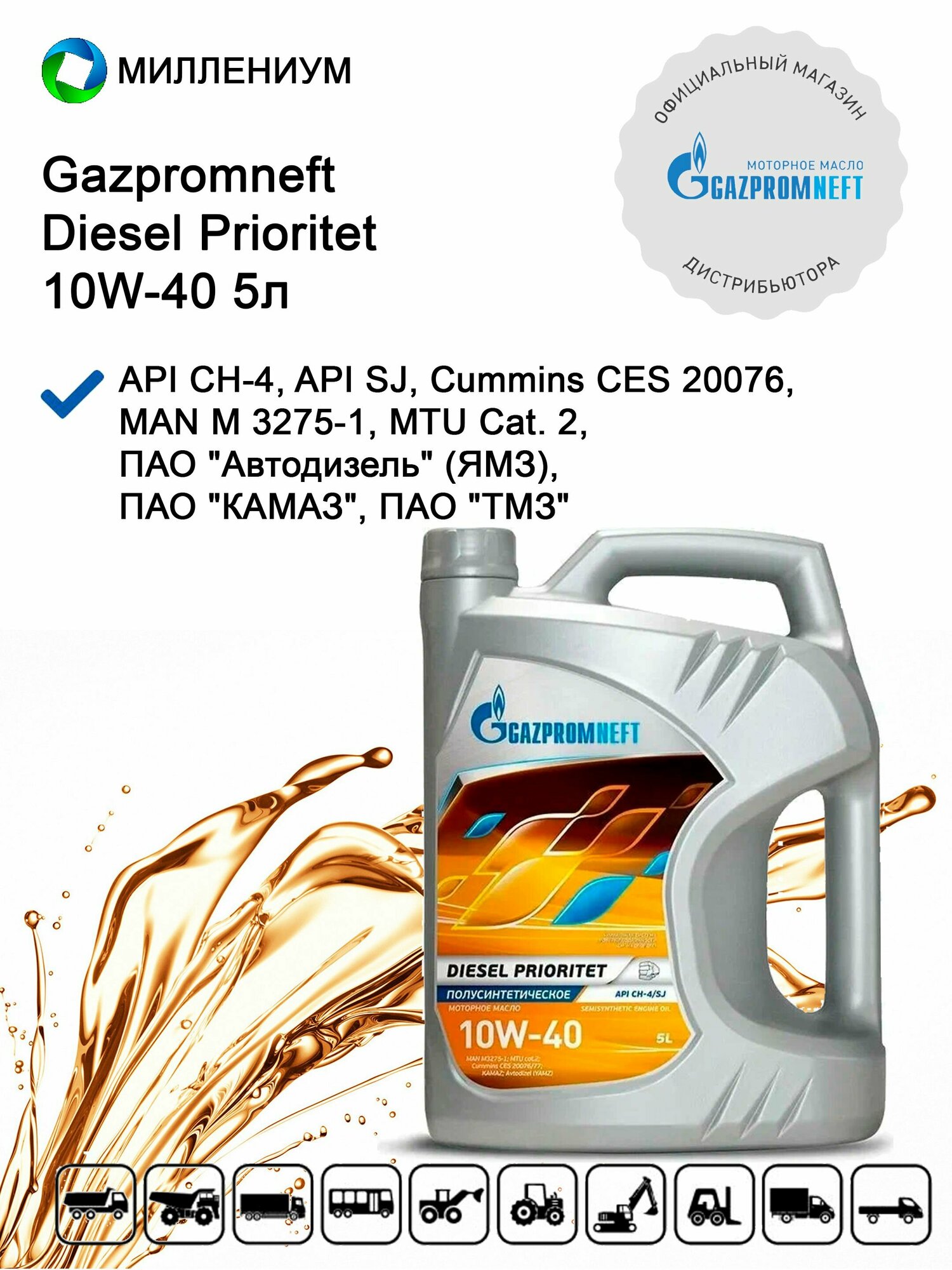 Масло моторное универсальное всесезонное Gazpromneft Diesel Prioritet 10W-40, канистра 5 л