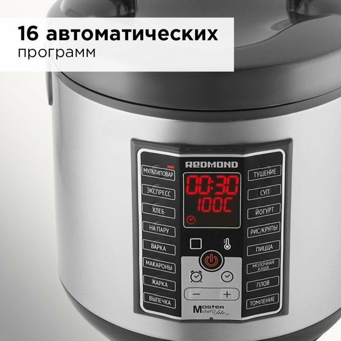 Мультиварка REDMOND RMC-M25, 16 программ, отсрочка старта на 24 часа, автоподогрев, мультиповар, антипригарное покрытие чаши, чаша на 5 литров